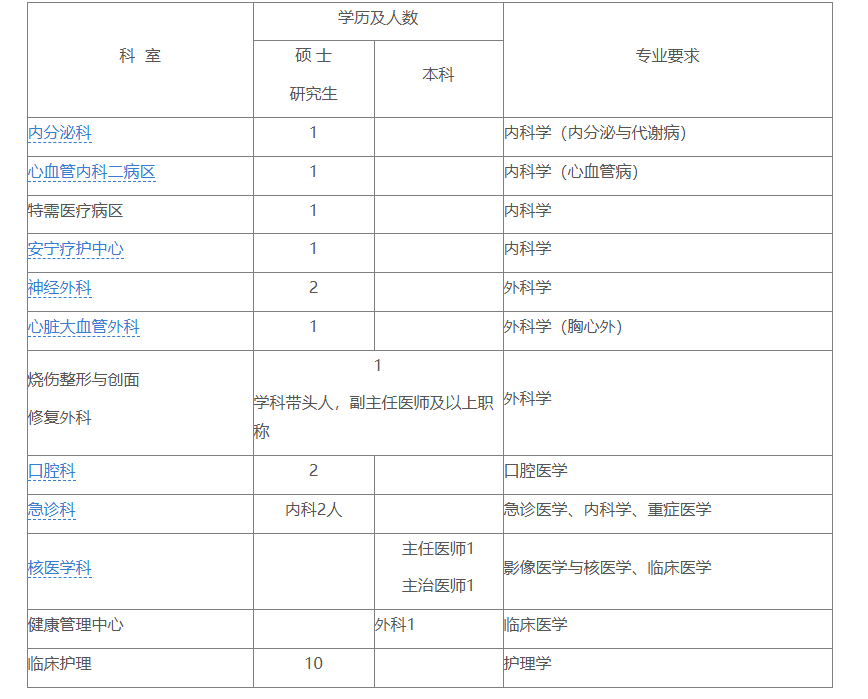 醫(yī)院長期招聘各臨床專業(yè)博士,人數(shù)不限。
