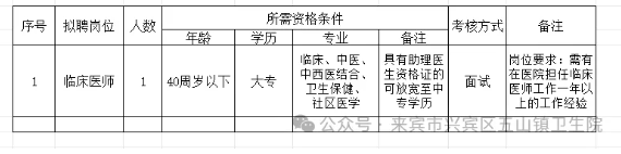 原文標(biāo)題:來(lái)賓市興賓區(qū)五山鎮(zhèn)衛(wèi)生院公開招聘編制外聘用人員公告