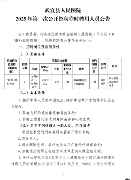 原文標(biāo)題:武宣縣人民醫(yī)院2025年第一次公開(kāi)招聘臨時(shí)聘用人員公告