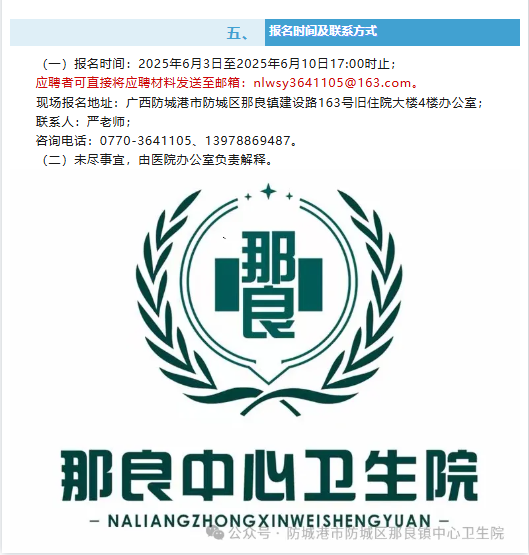 原文標題:招醫(yī)生、護工啦!防城區(qū)那良鎮(zhèn)中心衛(wèi)生院“職”等你來