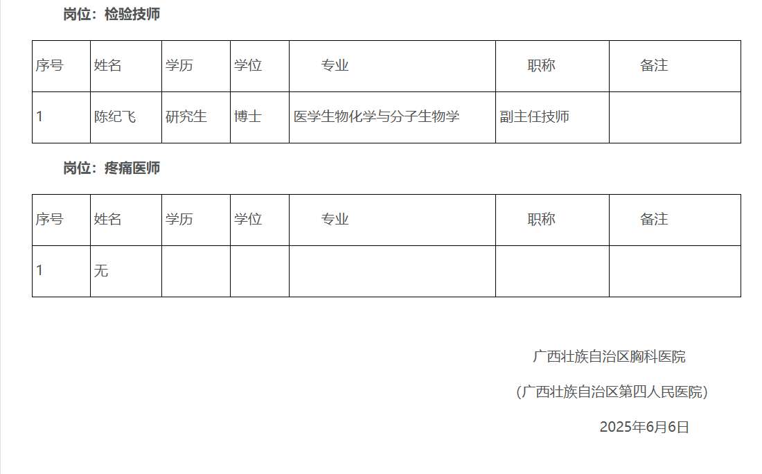 自治區(qū)胸科醫(yī)院2025年度高層次人才公開(kāi)招聘實(shí)名編制工作人員報(bào)名通過(guò)資格審查人員名單