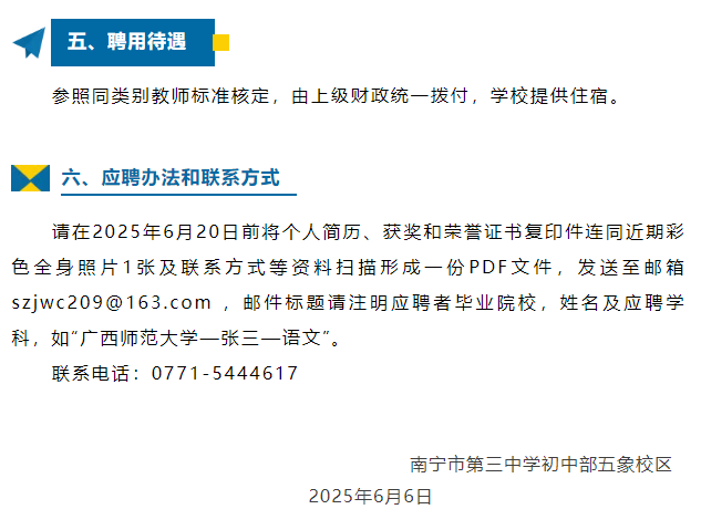 原文標(biāo)題:南寧市第三中學(xué)初中部五象校區(qū)2025-2026學(xué)年臨聘教師招聘啟事