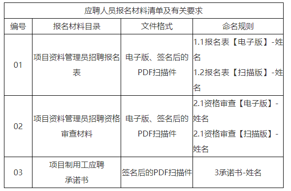 應(yīng)聘人員請按照《應(yīng)聘人員報名材料清單及有關(guān)要求》提供相應(yīng)報名材料,打包壓縮成一個文件(文件名和郵件主題統(tǒng)一以本人姓名進行命名,例如“2025年項目資料管理員_張三”),發(fā)送至電子郵箱:bsgdjgkjp@gx.csg.cn。