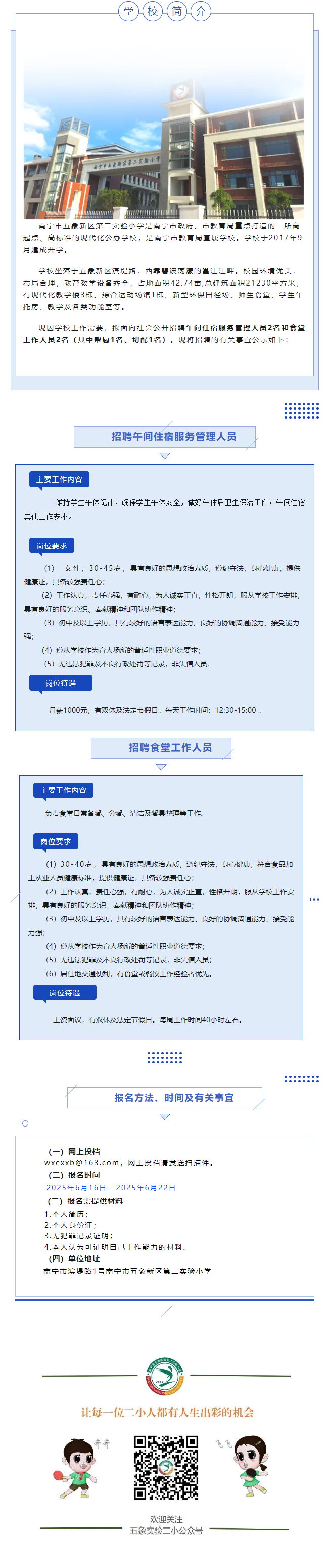 南寧市五象新區(qū)第二實驗小學招聘公告