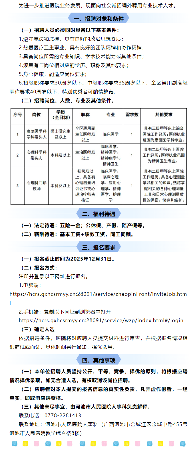 2025年河池市人民醫(yī)院公開招聘康復(fù)醫(yī)學(xué)科、心理科專業(yè)技術(shù)人才