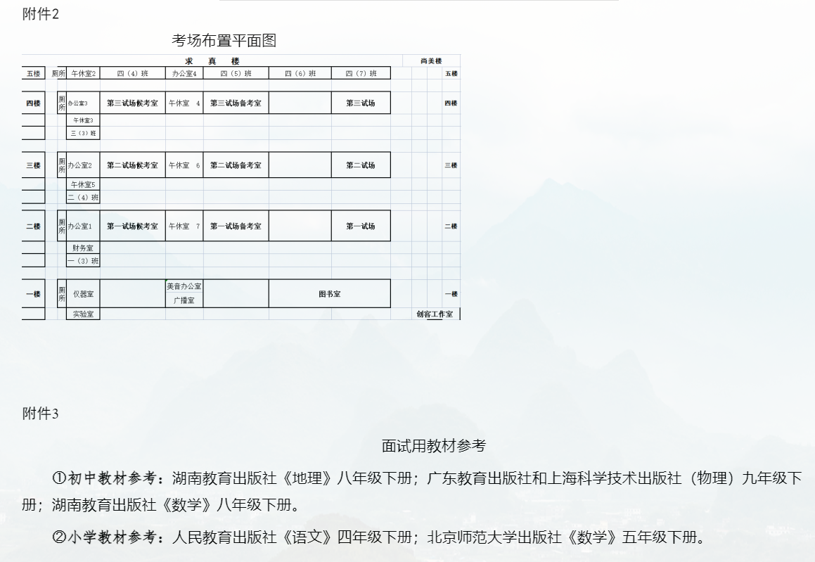 (二)面試內(nèi)容:面試主要是通過試講考察考生的專業(yè)素質(zhì)和教育教學綜合素質(zhì),包括:對教材的分析和把握程度、專業(yè)知識能力、教學設計、教學方法、教師素養(yǎng)等。試講教材為我縣相應崗位學校用書,詳見面試用教材參考(附件3)。