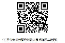 5.網(wǎng)上報(bào)名:應(yīng)聘人員登錄廣西公安機(jī)關(guān)警務(wù)輔助人員招聘網(wǎng)(https://fjgl.gat.gxzf.gov.cn:9099/)或掃描以下二維碼進(jìn)行網(wǎng)上報(bào)名。