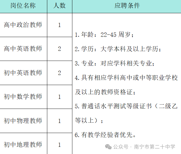 報名方式:有意應聘者,請于報名截止時間前打包個人簡歷及相關資格證書掃描件,發(fā)至學校教務處郵箱:nn20zjyz@163.com(郵件命名:姓名+應聘崗位)。