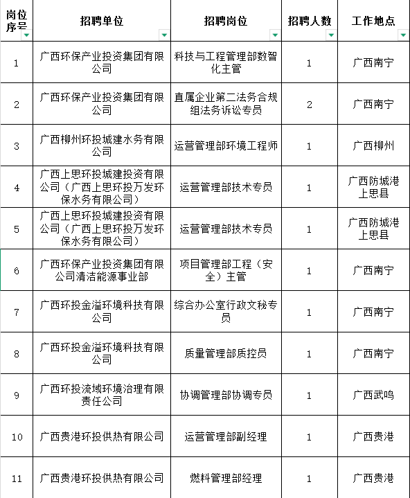 附件:廣西環(huán)保集團2025年第三次公開招聘崗位表