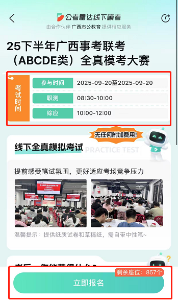 1??全zhen模擬高度還原:嚴格按照廣西事業(yè)單位聯(lián)考流程和時間進行,試卷對標zhen題,考場安排也高度還原,給你沉浸式考試體驗。